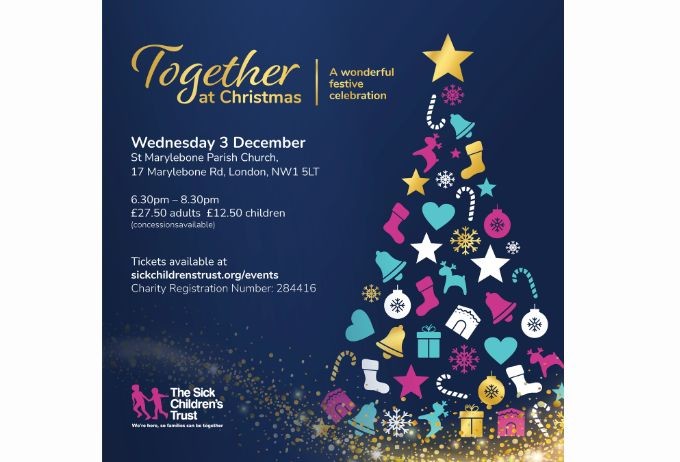 The Sick Children’s Trust warmly invites supporters, families, and local residents to Together at Christmas, its much-loved annual carol service held in the beautiful surroundings of St Marylebone Parish Church on Wednesday 3 December 2025.